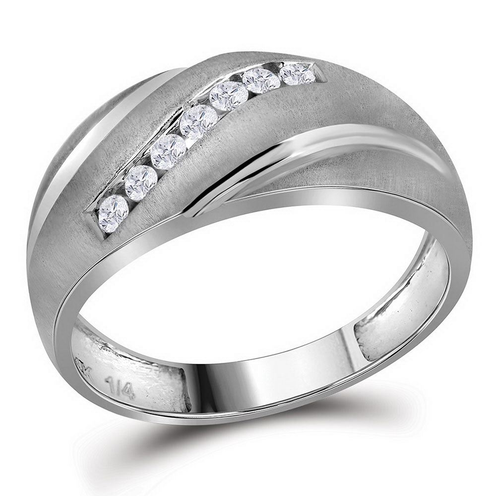 REF-22K5Y ---- Mens Round Diamond Band Ring 1/4 Cttw 10kt White Gold