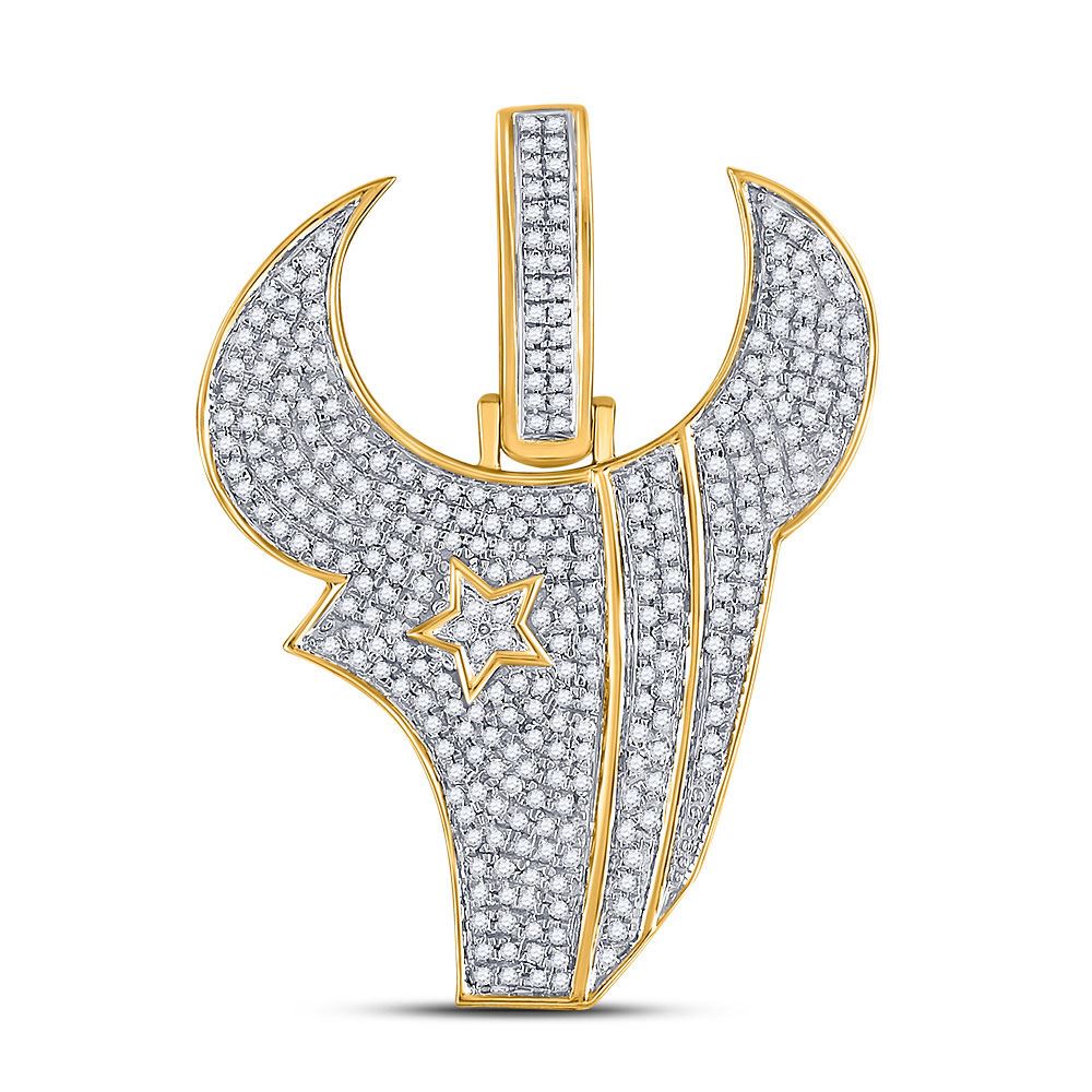 REF-49X9A ---- Mens Round Diamond Bulls Charm Pendant 7/8 Cttw 10kt Yellow Gold
