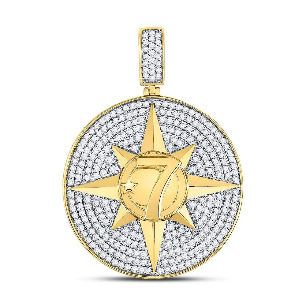 10kt Yellow Gold Mens Round Diamond Compass Rose Lucky 7 Charm Pendant 2-3/8 Cttw