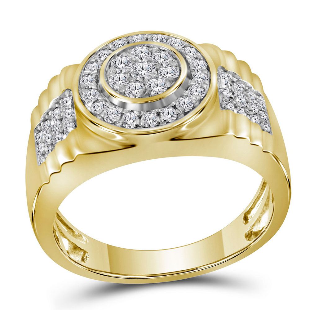 REF-62R9X ---- Mens Round Diamond Concentricle Circle Flower Cluster Ring 7/8 Cttw 10kt Yellow Gold
