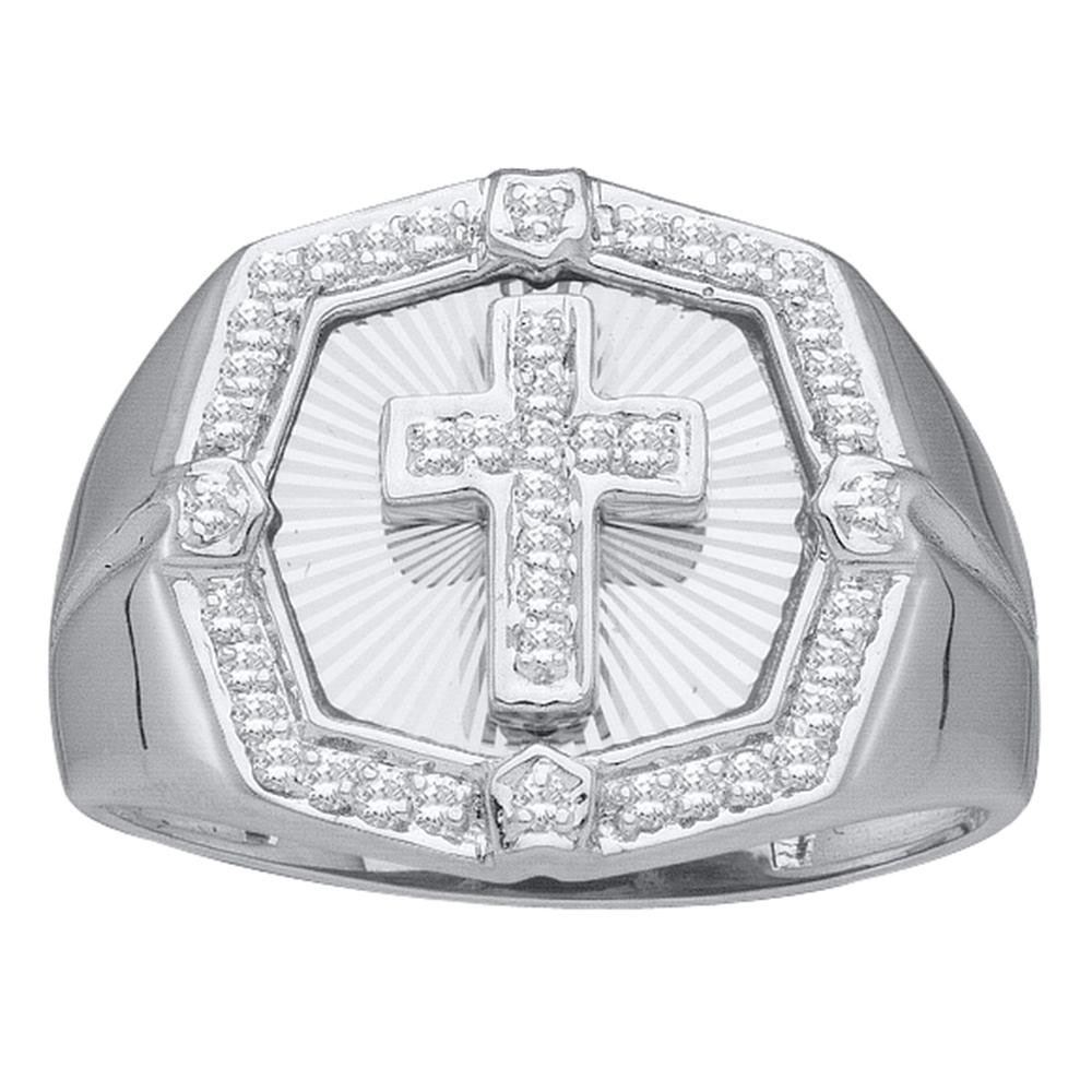 10kt White Gold Mens Round Diamond Cross Ring 1/4 CttwItem Number: GND-37684Gemstone Details1/4 Carats total weight