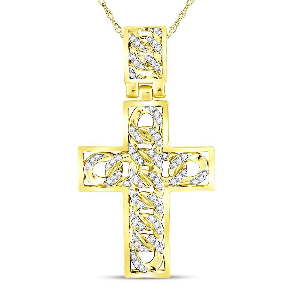 REF-41A5M ---- Mens Round Diamond Curb Link Cross Charm Pendant 5/8 Cttw 10kt Yellow Gold