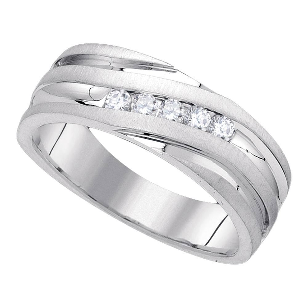 10kt White Gold Mens Round Diamond Diagonal Wedding Band Ring 1/4 Cttw