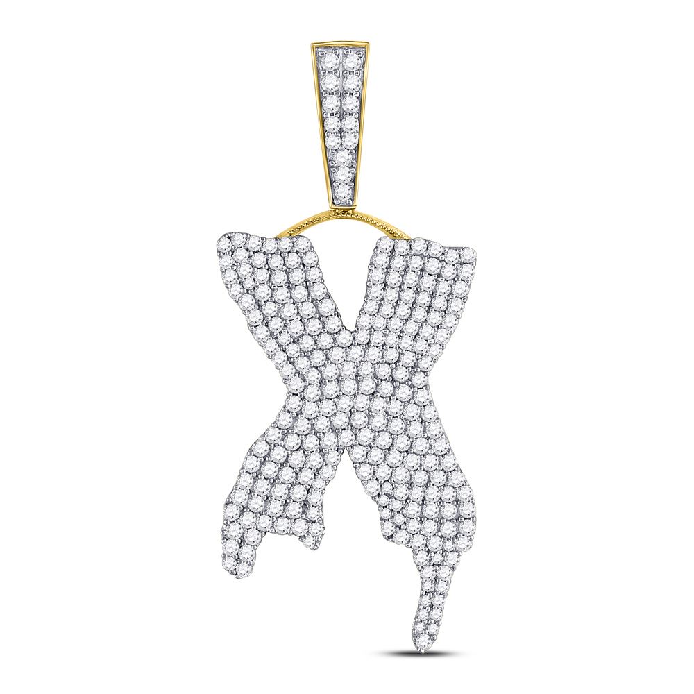 10kt Yellow Gold Mens Round Diamond Dripping X Letter Charm Pendant 2-1/2 Cttw