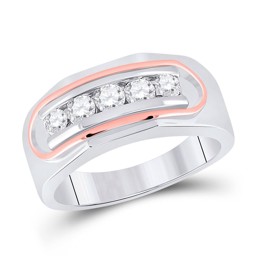 REF-93X9A ---- Mens Round Diamond Faceted Single Row Band Ring 3/4 Cttw 14kt Two-tone Gold