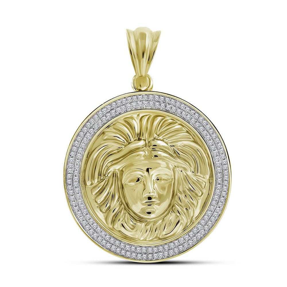 REF-68K5Y ---- Mens Round Diamond Gorgon Medusa Charm Pendant 1/2 Cttw 10kt Yellow Gold