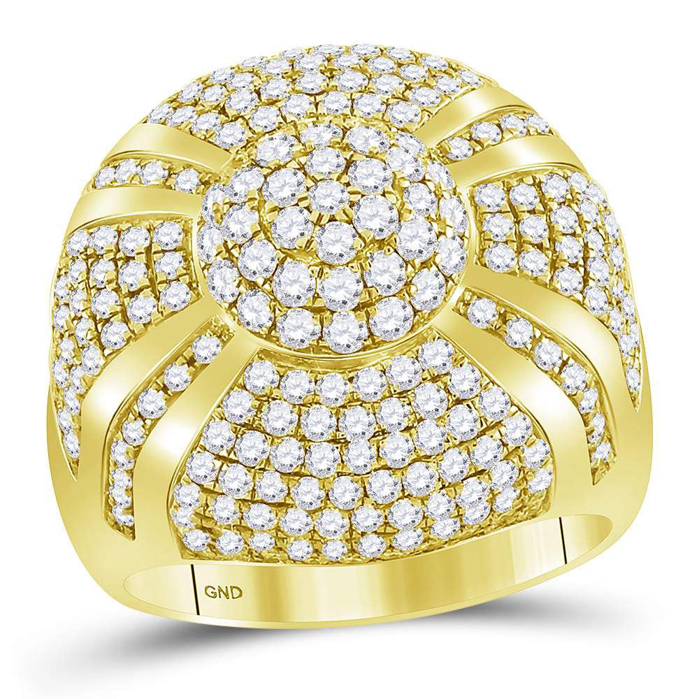 REF-243W5K ---- Mens Round Diamond Large Cluster Ring 3-5/8 Cttw 14kt Yellow Gold