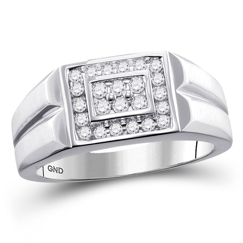 10kt White Gold Mens Round Diamond Rectangle Cluster Ring 3/8 Cttw