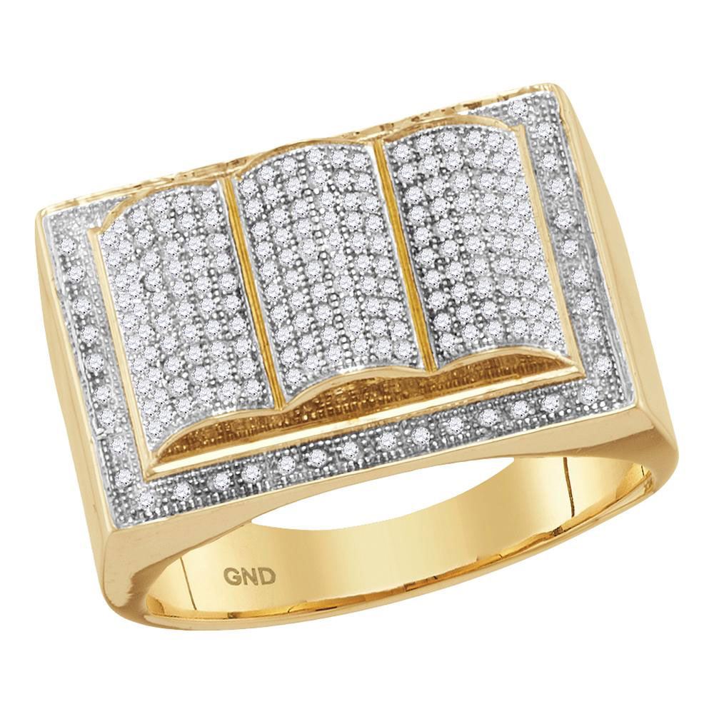 REF-47F9W ---- Mens Round Diamond Rectangle Ripple Cluster Ring 3/4 Cttw 10kt Yellow Gold