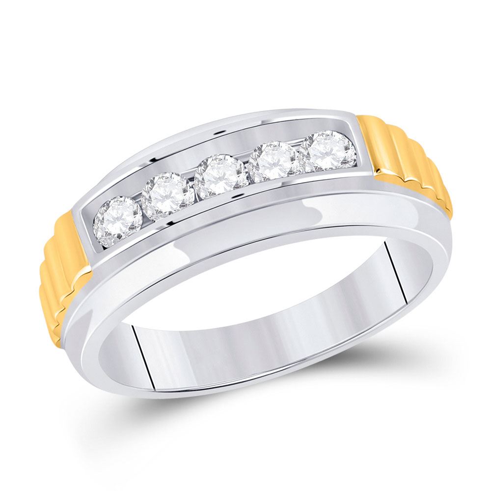 10kt Two-tone Gold Mens Round Diamond Ribbed 5-Stone Band Ring 5/8 CttwItem Number: GND-150750Gemstone Details<span