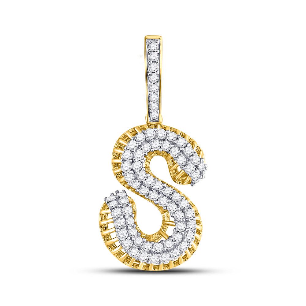 10kt Yellow Gold Mens Round Diamond S Letter Charm Pendant 1-1/3 Cttw
