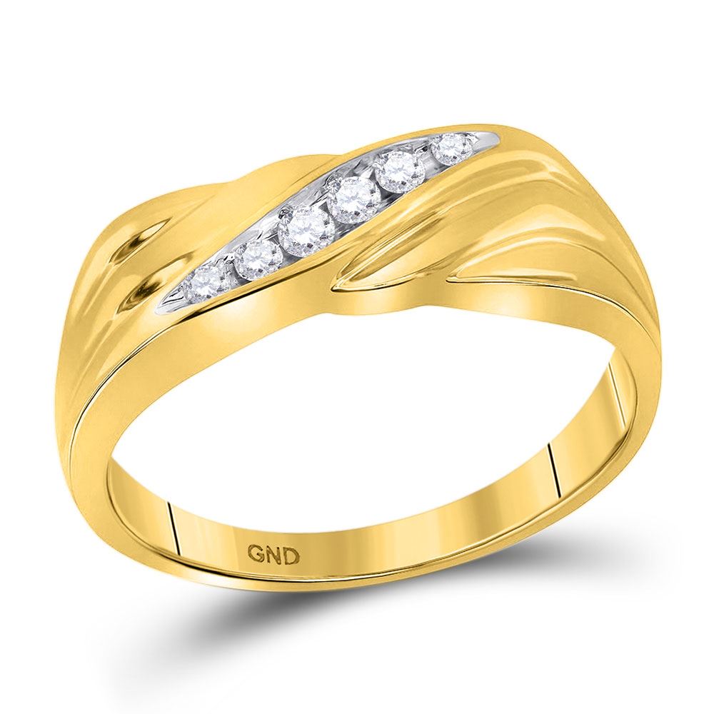 10kt Yellow Gold Mens Round Diamond Single Row Wedding Band Ring 1/8 Cttw