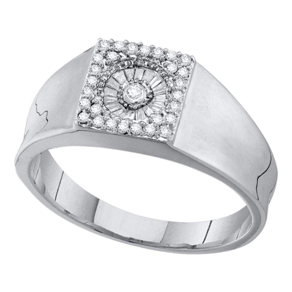 14kt White Gold Mens Round Diamond Square Cluster Ring 1/4 CttwItem Number: GND110528Gemstone Details1/4 Carats total weight --- .01 carat center solitaire