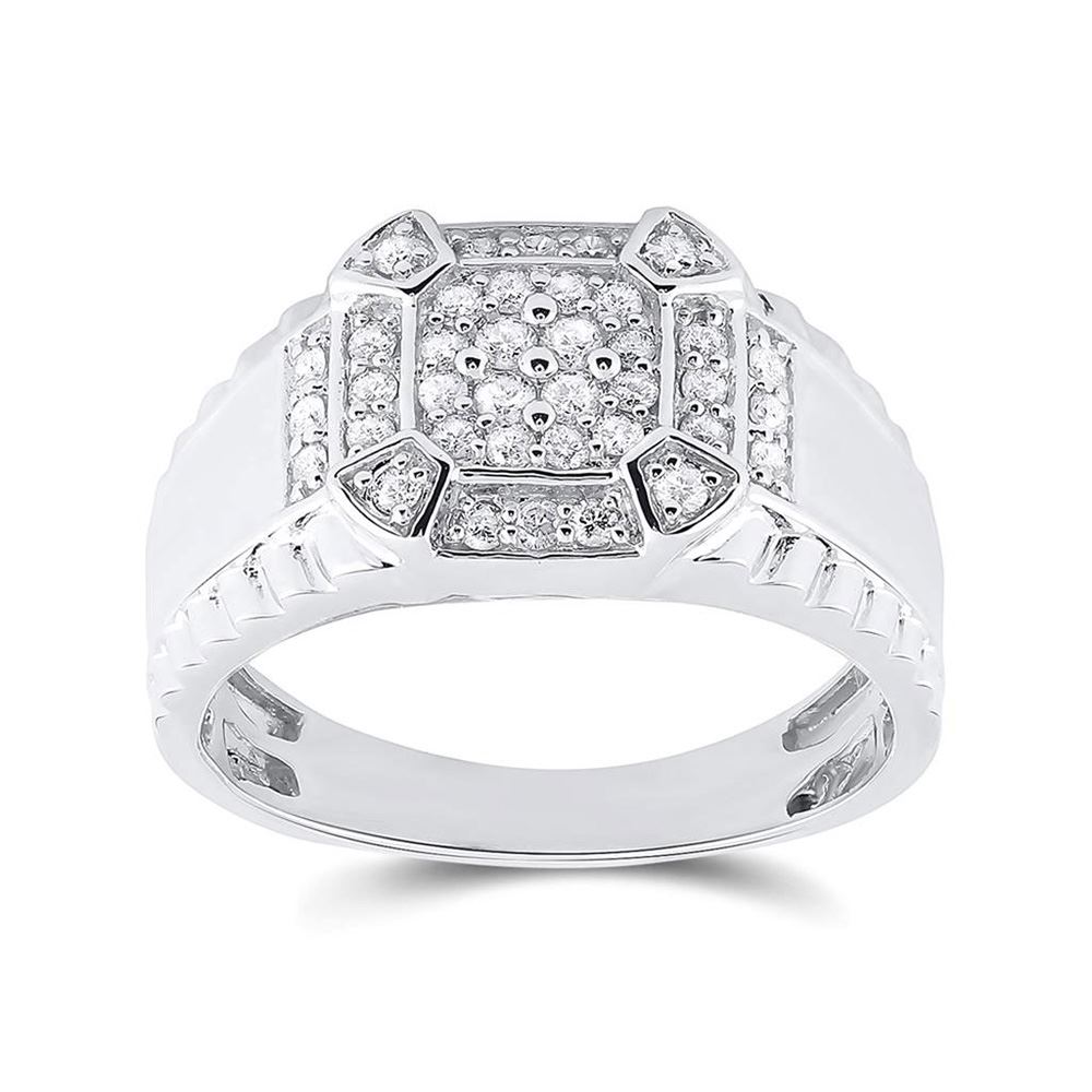 REF-41W5K ---- Mens Round Diamond Square Ring 1/2 Cttw 10kt White Gold