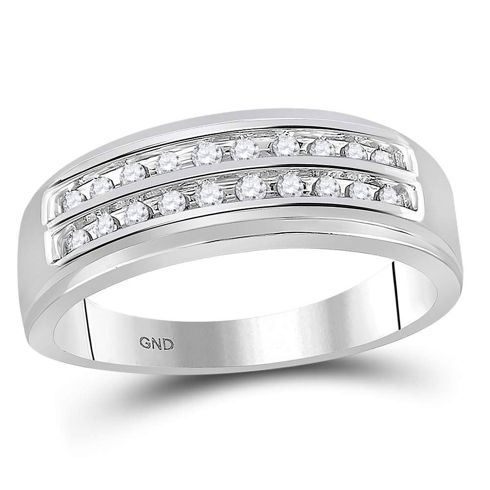 REF-22F5W ---- Mens Round Diamond Wedding 2-Row Band Ring 1/4 Cttw 10kt White Gold