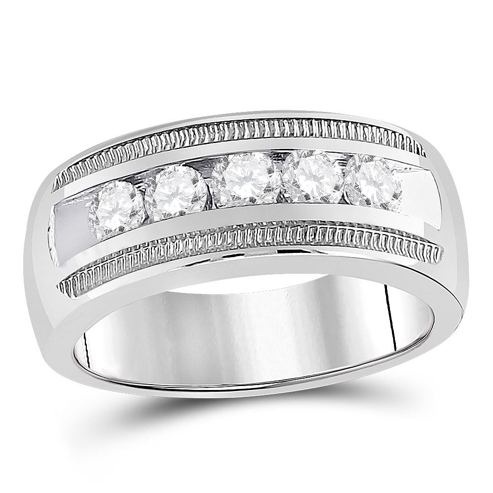 14kt White Gold Mens Round Diamond Wedding 5-Stone Band Ring 1 CttwItem Number: GND-128219Gemstone Details<span