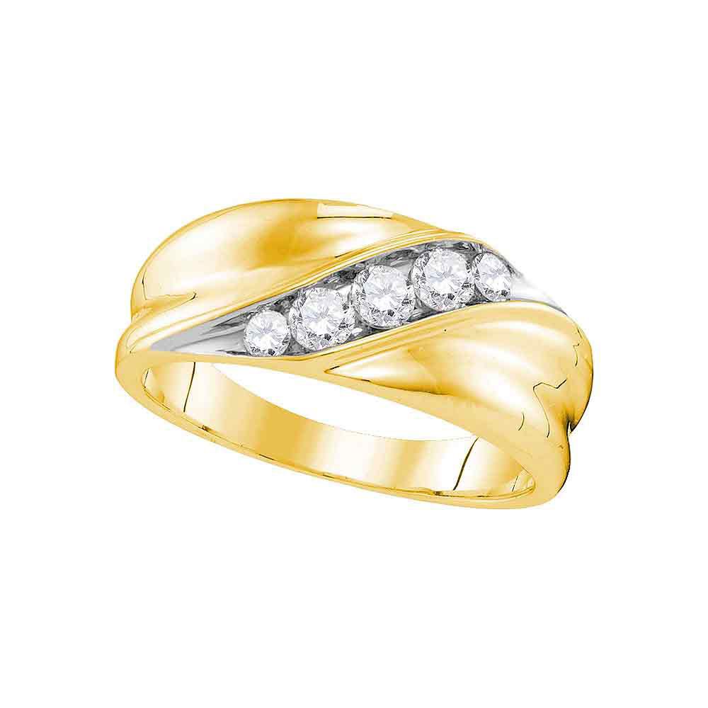 REF-46Y5N ---- Mens Round Diamond Wedding Diagonal Band Ring 1/2 Cttw 10kt Yellow Gold