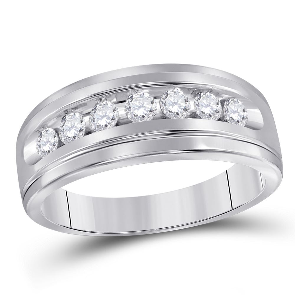 14kt White Gold Mens Round Diamond Wedding Single Row Band Ring 1/2 CttwItem Number: GND-148851Gemstone Details<span