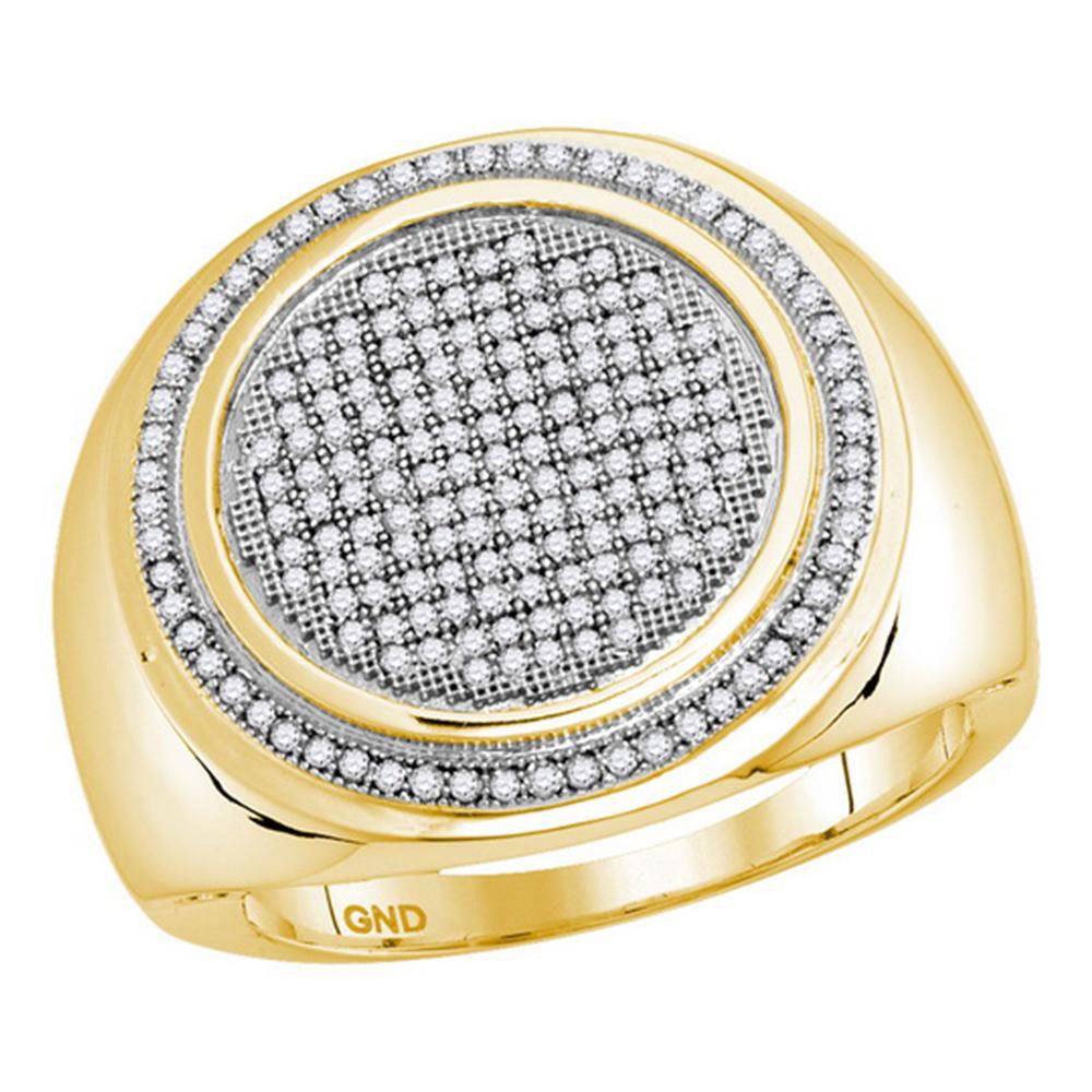 REF-66G4M - SKU: GD65329 ---- Mens Round Pave-set Diamond Circle Frame Cluster Ring 1/2 Cttw 10kt Yellow Gold