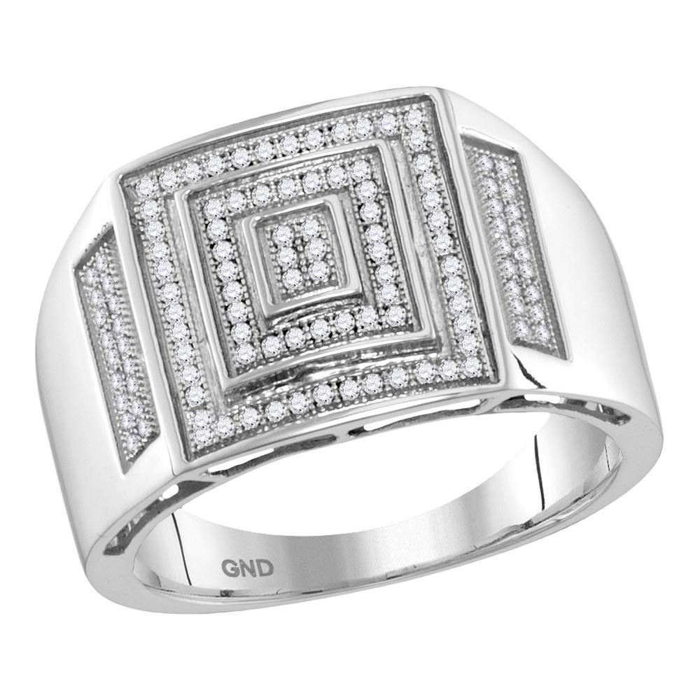 10kt White Gold Mens Round Pave-set Diamond Concentric Square Cluster Ring 1/3 Cttw