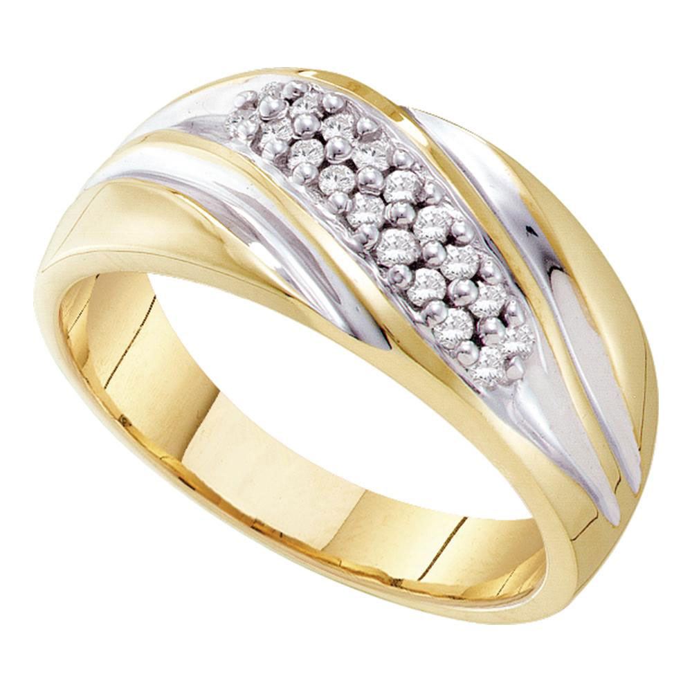 REF-29G1M - SKU: GD21581 ---- Mens Round Pave-set Diamond Diagonal Double Row Wedding Band 1/4 Cttw 10kt Yellow Two-tone Gold
