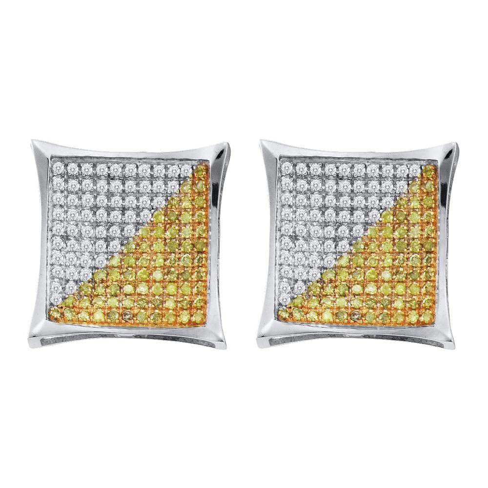 REF-13K6R - SKU: GD54282 ---- Mens Round Yellow Color Enhanced Diamond Square Cluster Earrings 1/4 Cttw 10kt White Gold