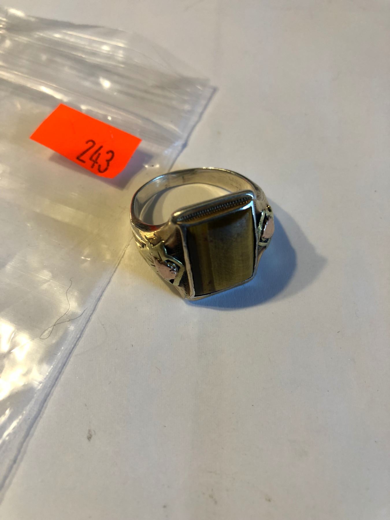 Mens Size 11 Large Tiger Eye with Black Hills Gold & Sterling Silver Ring Total weight is 8.9 Grams