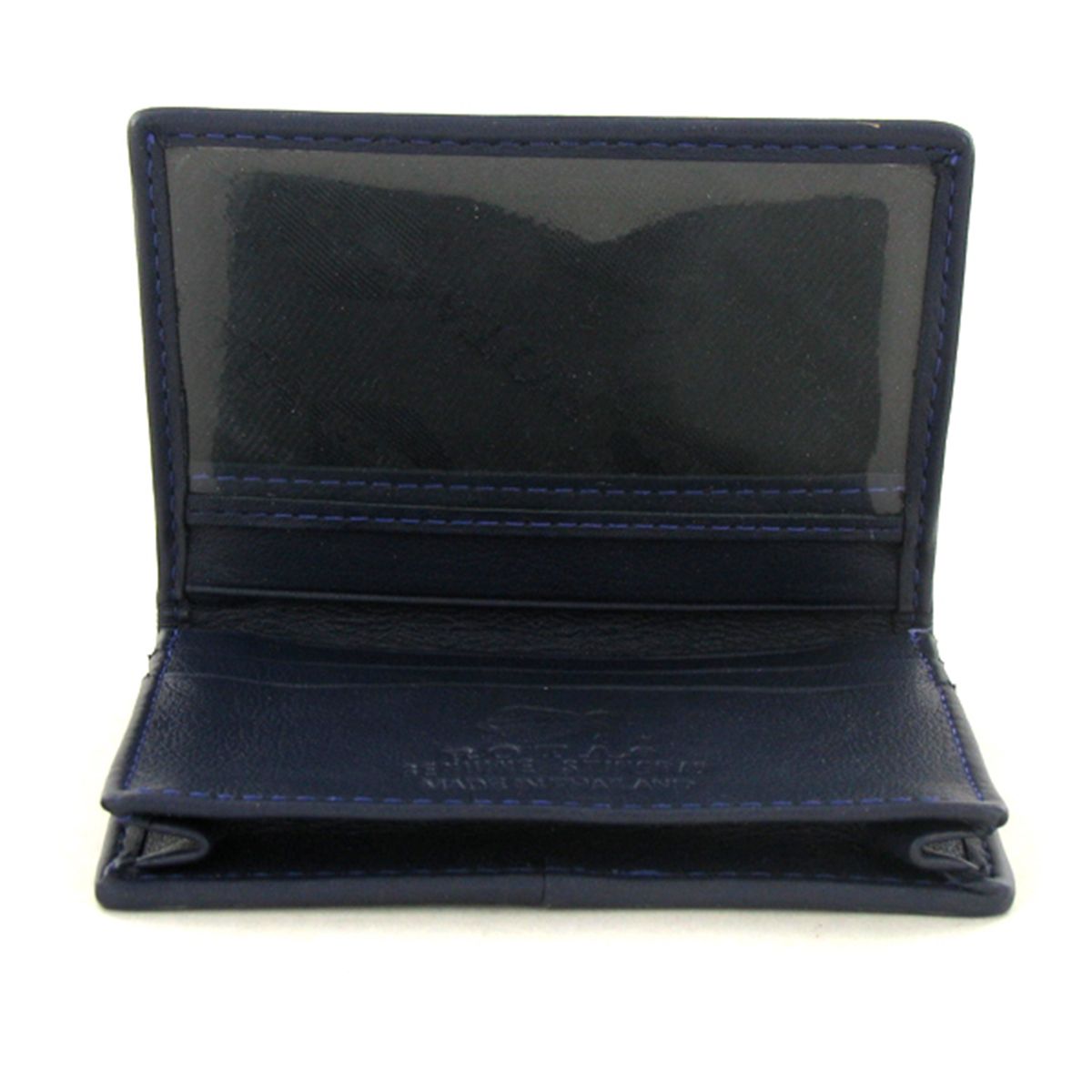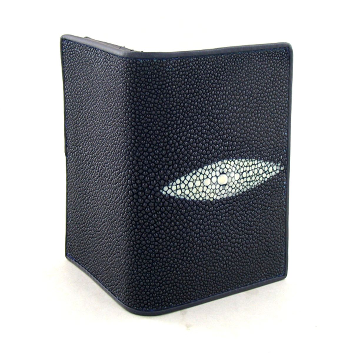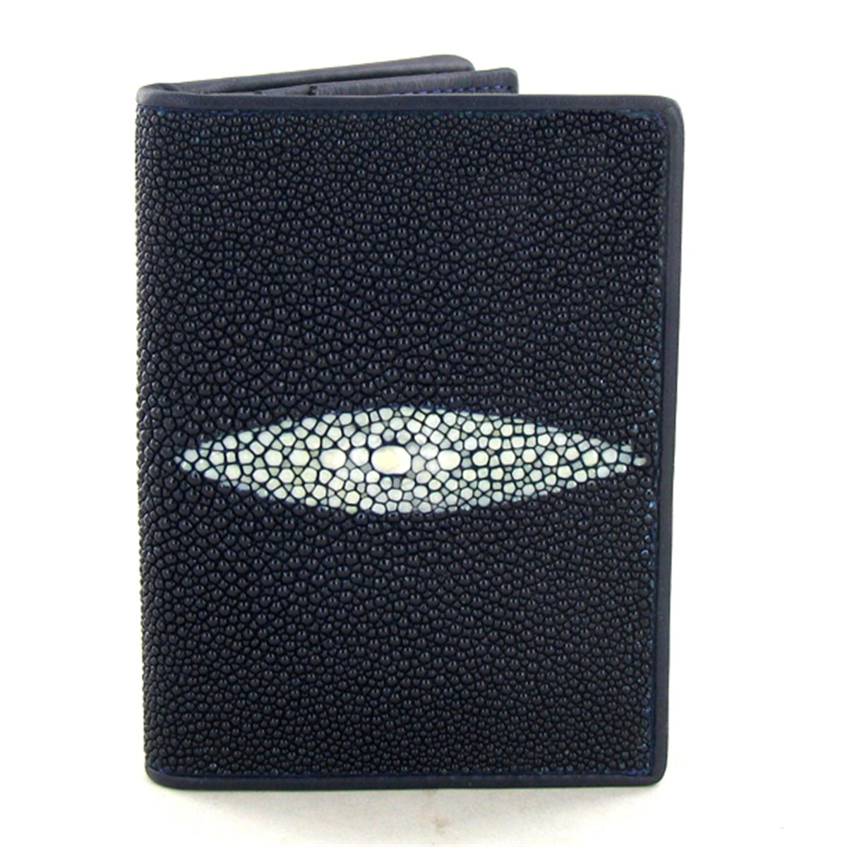 Well made; brand new navy blue Stingray Hide card case. 3" x 2.5" when folded; multiple card slots; folded bill slot