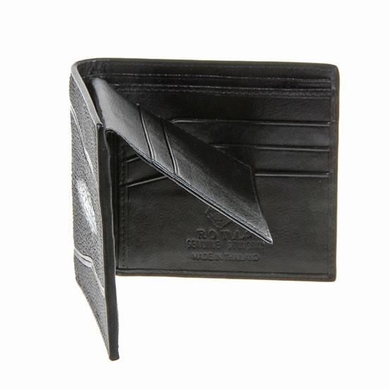 Well made; brand new mens Stingray Hide wallet. Sought after back diamond marking at center. 4.5" x 4" when folded; multiple card slots; bill slots and license flap inside.