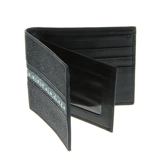 Well made; brand new mens Stingray Hide wallet. Sought after tail stripe at center. 4.5" x 3.75" when folded; multiple card slots; bill slots and license flap inside. $295 retail