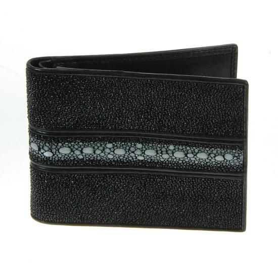 Well made; brand new mens Stingray Hide wallet. Sought after tail stripe at center. 4.5" x 3.75" when folded; multiple card slots; bill slots and license flap inside. $295 retail