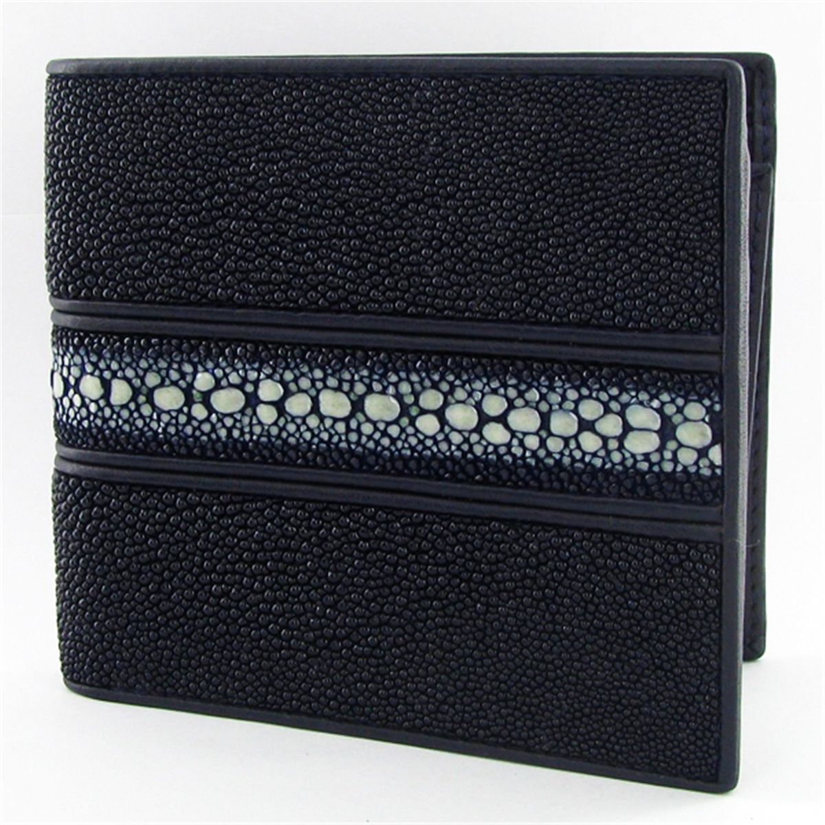 Well made; brand new navy mens Stingray Hide wallet. Sought after tail stripe at center. 4.5" x 3.75" when folded; multiple card slots; bill slots and license flap inside. $295 retail