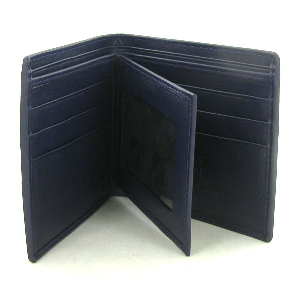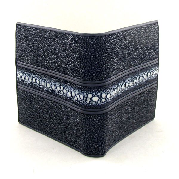 Well made; brand new navy blue mens Stingray Hide wallet. 4.25" x 4" when folded; multiple card slots; bill slots and license flap inside