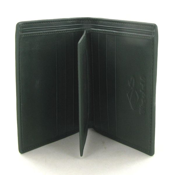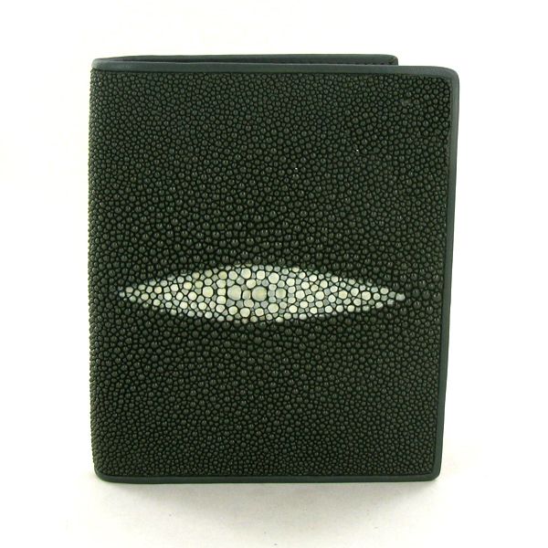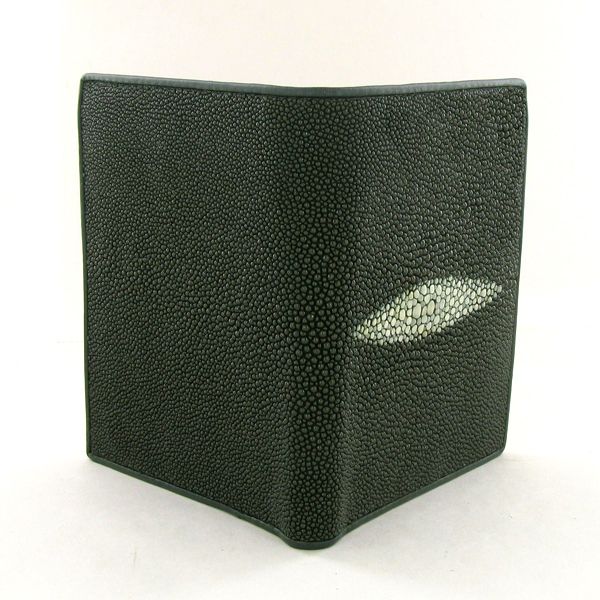 Well made; brand new dark green upright mens Stingray Hide wallet. 4.5" x 3.75" when folded; multiple card slots; bill slots and license flap inside