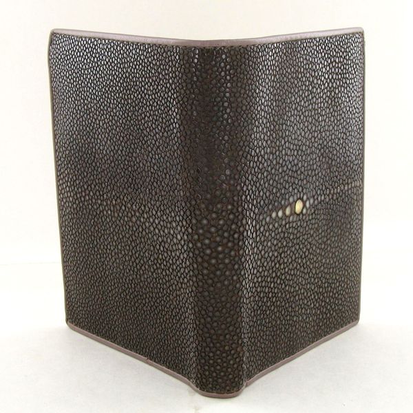 Well made; brand new dark/light green upright mens Stingray Hide wallet. 4.5" x 3.75" when folded; multiple card slots; bill slots and license flap inside