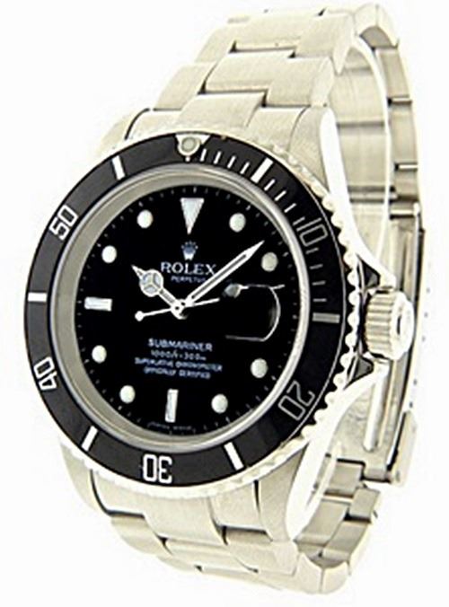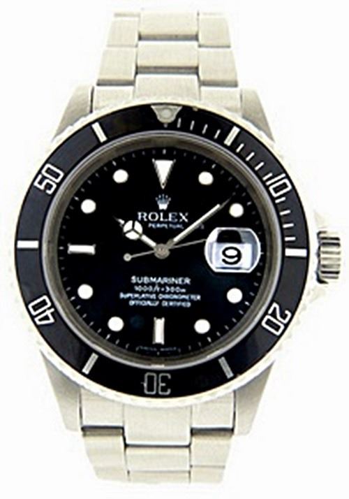 Manufacturer: Rolex , Model Name: Submariner , Model Number: 16610T , Gender: Mens , Circa 2005 , Condition: Pre-Owned Polished and Overhauled, Case: Stainless Steel 40mm Width , Movement: Automatic , Dial: Black , Bezel: Original Rolex Stainless Steel Bezel with Aftermarket Black Insert, Crown: Stainless Steel , Bracelet/Strap: Oyster Stainless Steel fits up to 7 1/2 Inches , Crystal: Sapphire , Calander: Quick-Set Date at Three O'Clock, Box/Papers: NONE