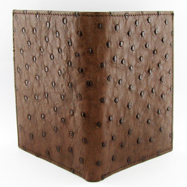 Well made; brand new mens Ostrich Hide upright wallet. Sought after top skin. 5" x 3.5" when folded; multiple card slots; bill slots inside. $345 retail