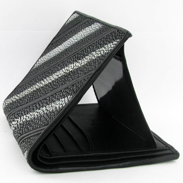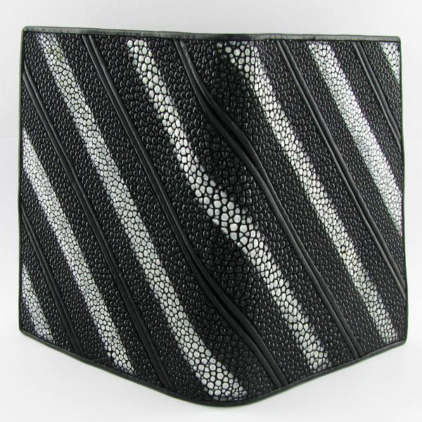 Well made; brand new mens upright Stingray Hide wallet. Sought after dyed diagonal striping. 5" x 3.75" when folded; multiple card slots; bill slots and license flap inside. $245 retail