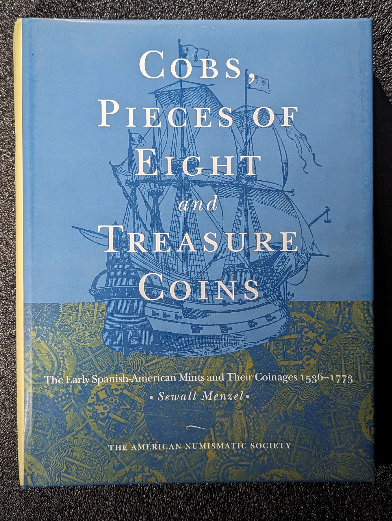 Menzel, Sewall H. Ph.D. COBS, PIECES OF EIGHT AND TREASURE COINS. THE EARLY SPANISH-AMERICAN MINTS AND THEIR COINAGES, 1536-1773. The American Numismatic Society, New York. 2004. 4to. xi, 484 pages. Original blue cloth, gilt, jacket. b&w coin photos and line illustrations throughout. Minor highlighting. Jacket/Book Fine. In the 1520s the Spanish crown began to realize through expanded explorations of the likes of Hernando Cortez and Francisco Pizarro that it was in charge of an enormous empire requiring extensive settlement and systems of control. Royal mints were founded to control, evaluate and tax gold and silver coming from the mines, as well as to produce the coins needed for everyday commercial transactions. For some 250 years the mints churned out millions of cob-style coins, many of which found their way into the treasure galleons of the day. Soon mints such as Mexico and Potosi became known as the financial 'pillars of empire' and enabled Spain to engage in seemingly endless wars of conquest and plunder. Geography, crown intransigence, bureaucratic incompetence, royal intrigues and outright scandal all had an impact on the mints and their productions. In this comprehensive and fully referenced study, Sewall Menzel brings out the critical detail and information needed to understand the ten early Spanish mints of Mexico, Santo Domingo, Peru, Potosi, Panama, Santa Fe de Nuevo Reino (Bogota), Cartagena, Cuzco, Guatemala and Cuba and their respective coinages. Through the use of some two thousand photos and diagrams the coins are identified by mint, king, denomination, mint assayer and type. Lot weight: 3 lbs 10oz. Subject(s): Spanish American Coinage.