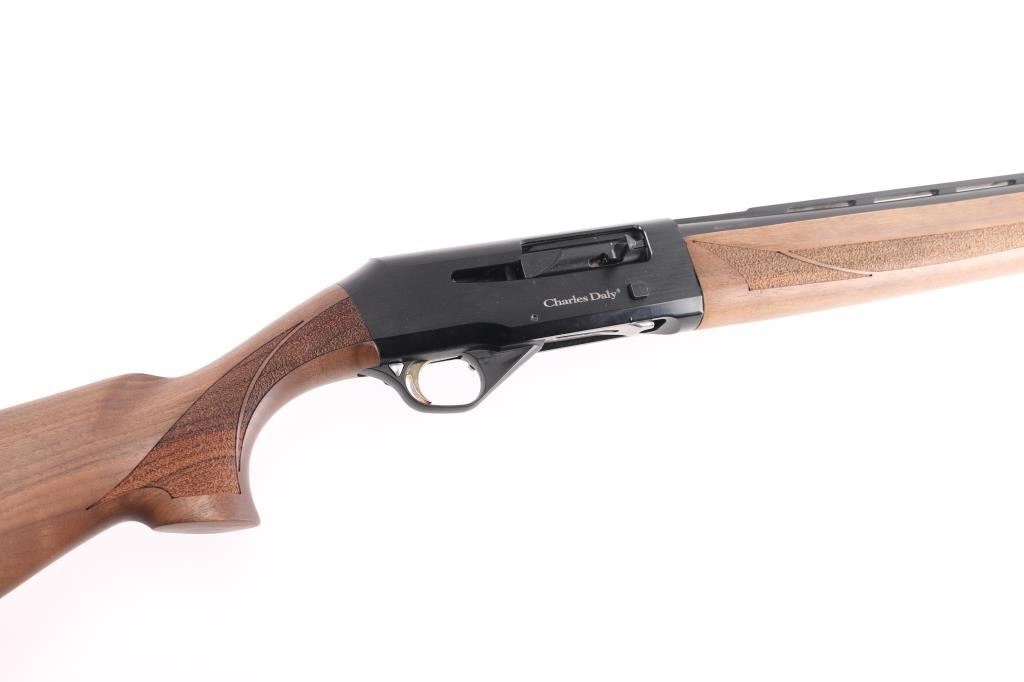 Made in Turkey, imported by Chiappa. "Charles Daly "601 Black/Wood 12ga 3in Semi Automatic Shotgun. The 601 features Beretta/Benelli Mobile Choke Thread MC-3. 28" vent rib barrel with red fiber optic sight. Gas Operated Bolt, Single Trigger System, Checkered Wood Stock And Forend, Manual Safety, Black Anodized With Blued Barrel, Auto Ejection, rubber recoil pad. Bore is excellent, overall excellent, like new.