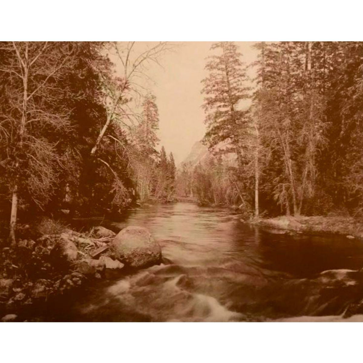 Merced River from Pohono Bridge, Yosemite Valley, California sepia-tone photo print. Printed on heavy card stock in the early 1990's for The American Heritage Gallery from the original c.1880 albumen print. 11" X 14" in original shrink-wrapped packaging.Â