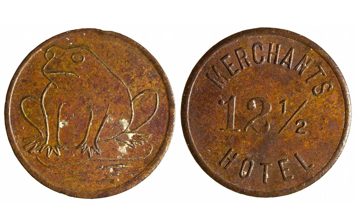 Obverse: Merchants / 12 1/2 / Hotel; reverse: (pictorial) bullfrog.