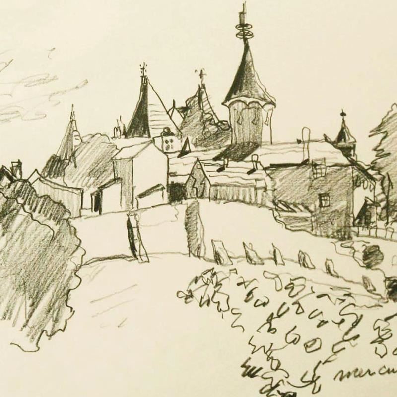 "Mercurey, Burgundy" is an original Pencil on Paper by Wayne Ensrud. The piece is hand signed by the artist and comes with a Certificate of Authenticity. Measures approximately 15" x 18".