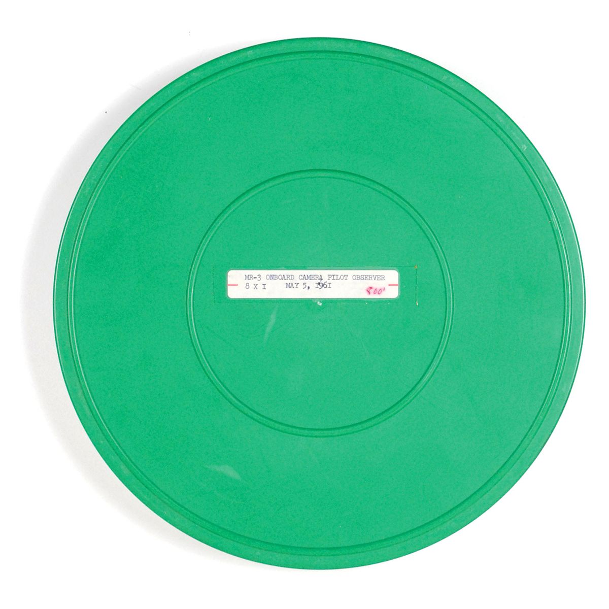 Original canister of film from the Mercury 3 mission. Canister measures 10.75? in diameter, and contains one reel of color film. Label affixed to the cover reads, in part: “MR-3 Onboard Camera Pilot Observer.” Film is 800 feet in length, and is dated May 5, 1961. A copy of an inventory sheet is included which also lists “various scenes of pilot on board, 8 x 1 Stretch.” In fine condition.