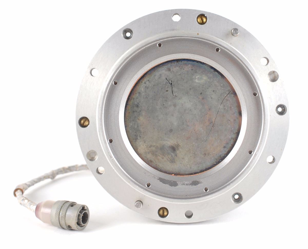 Extremely rare Mercury Capsule Horizon Scanner manufactured by Barnes Engineering Company, measuring approximately 5.75? tall and 5.5? in diameter, labeled on the top, “Horizon Scanner, Serial No. 145…Part No. B4232-001, Model 13-130A-1-RT.” There is a ten-pin connector on top with a label below identifying the various functions. The upper portion is wrapped in a foil tape and has an additional short wire extending from the top. In fine condition. The scanner was incorporated into the the spacecraft to provide earth fixed reference to the Mercury astronaut in the event he had to assume manual attitude control during reentry; under nominal conditions an automatic attitude control system performed this function. An accurate determination of the horizon was considered a good human backup to orient the craft for a return from orbit should these automatic control systems fail. Consignor presumes this artifact to have been flown and de-installed from one of the Mercury capsules (supporting provenance is unavailable).