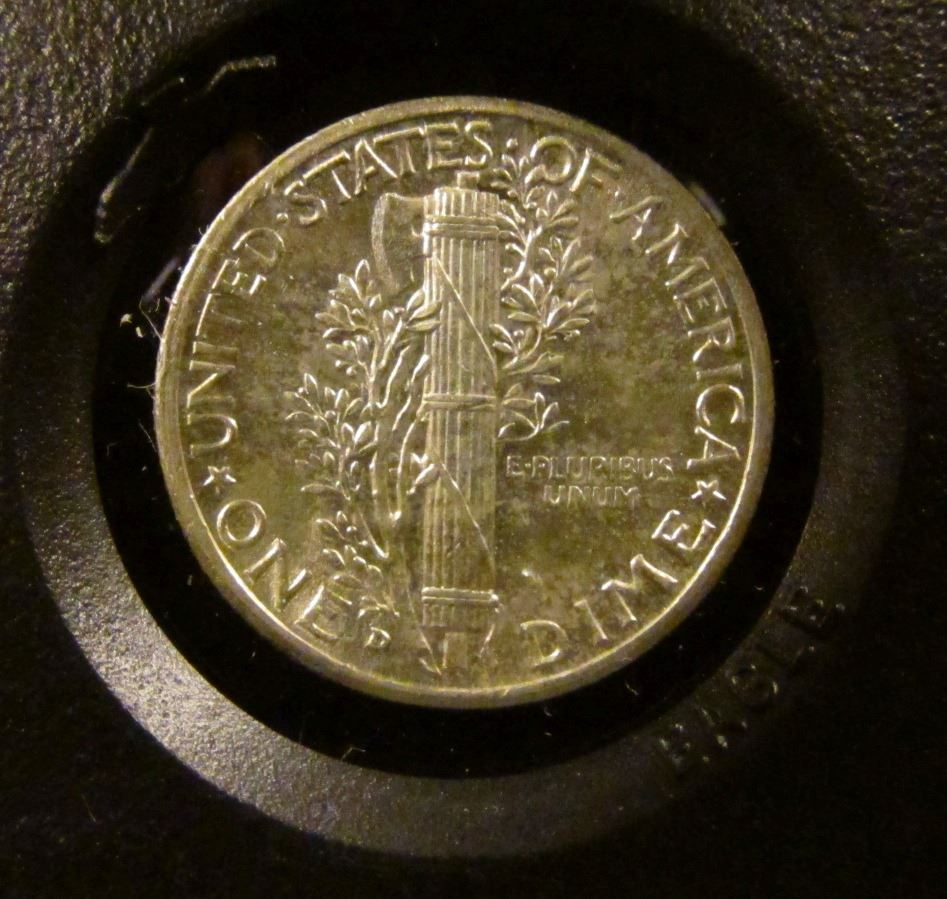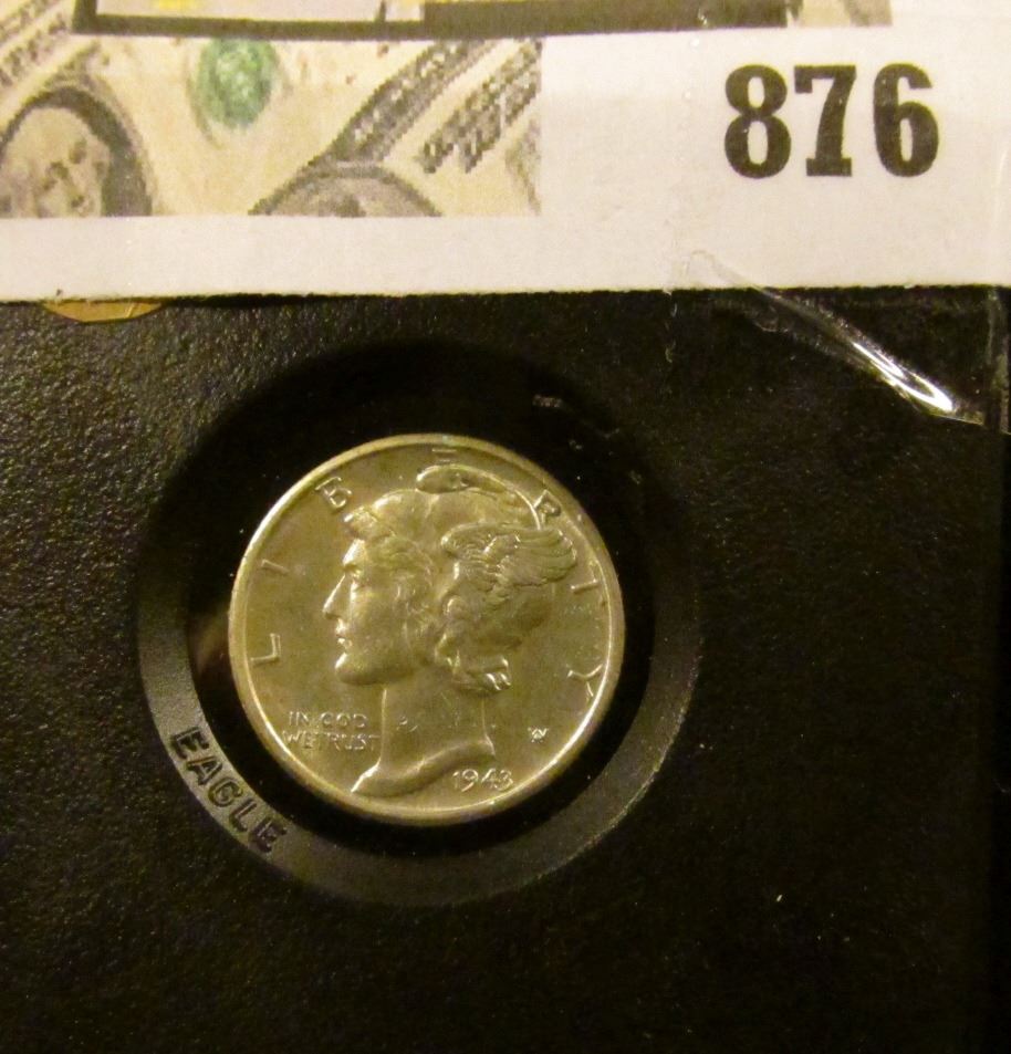 Mercury Dime 1943 D Unc in black holder