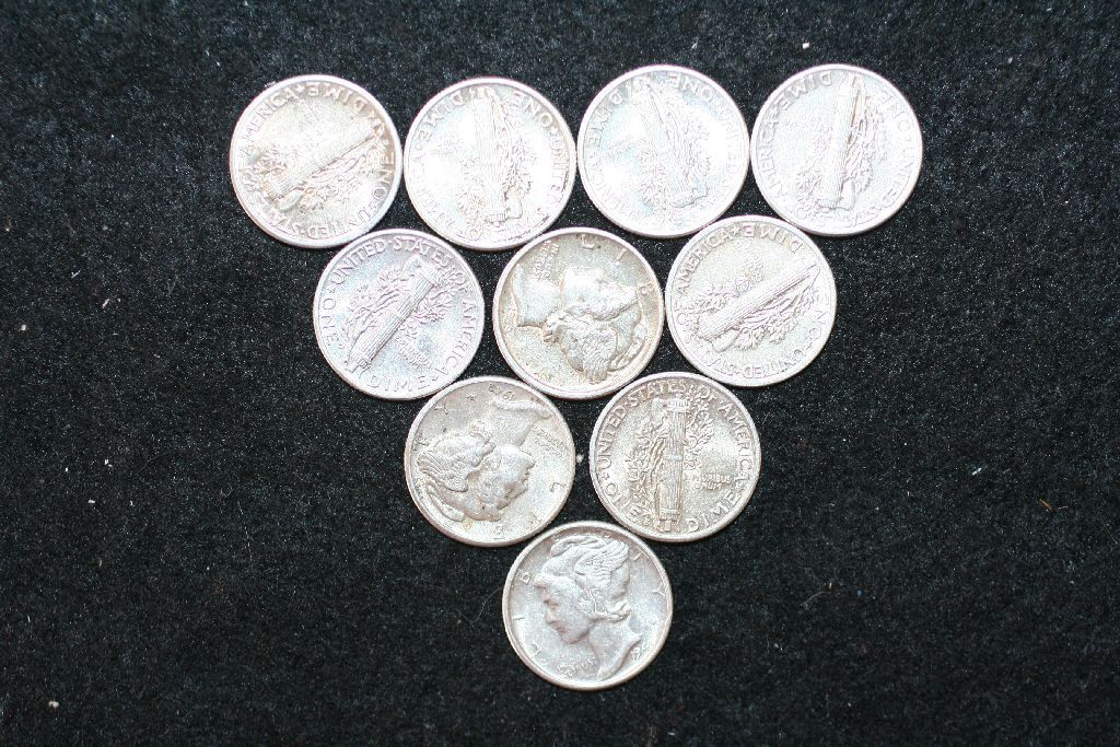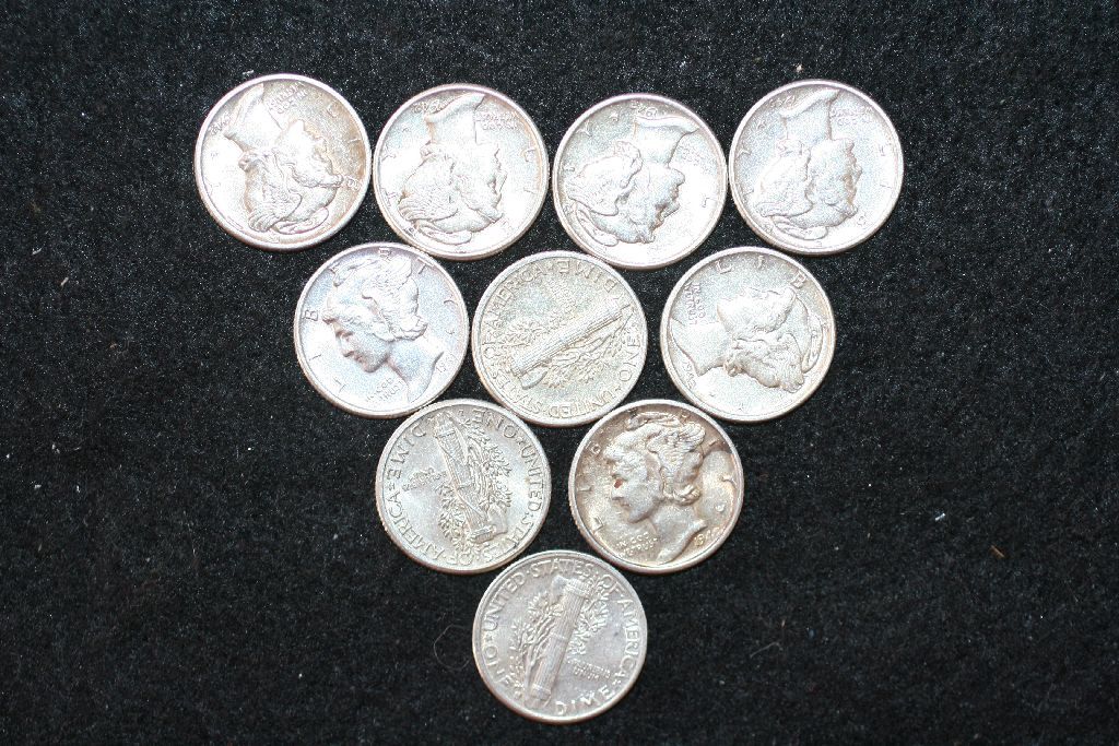Mercury Dime; Various Dates & Conditions; Lot of 10; BU