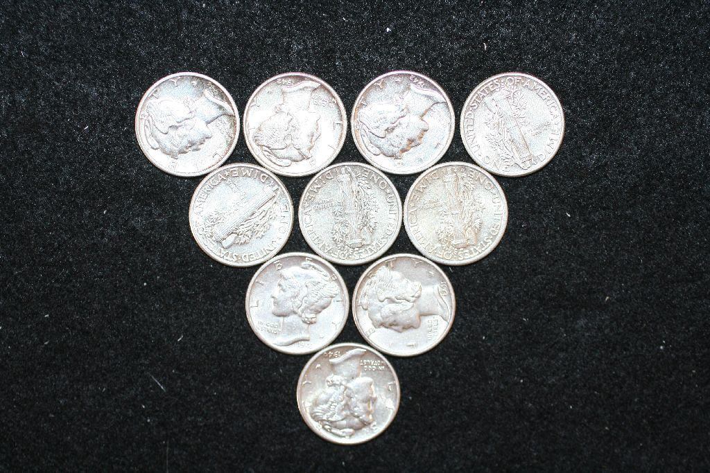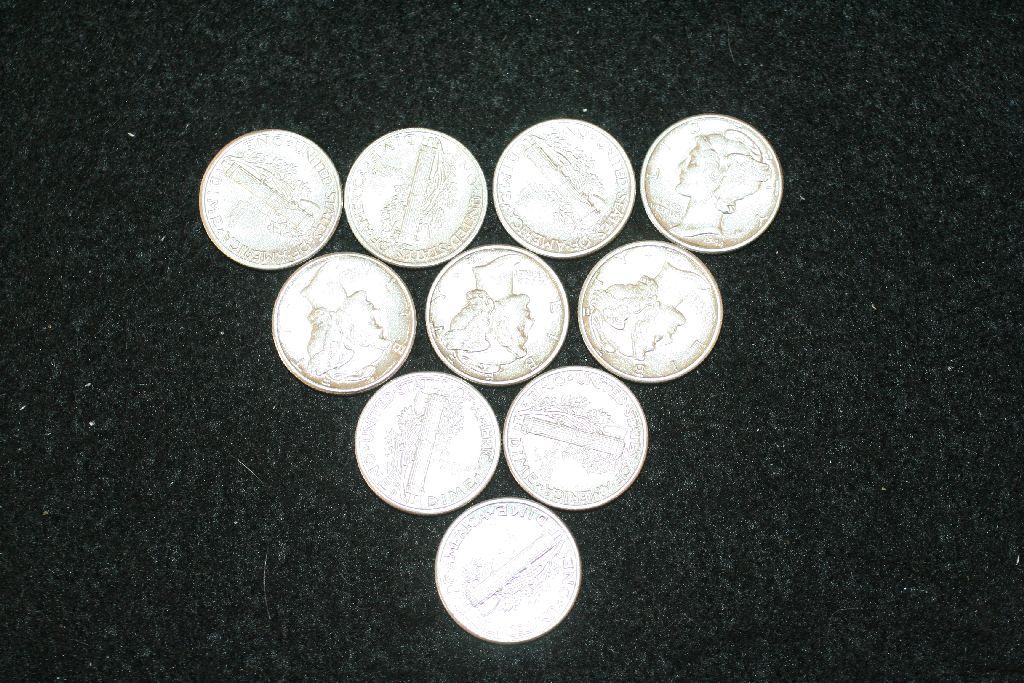 Mercury Dime; Various Dates & Conditions; Lot of 10; BU