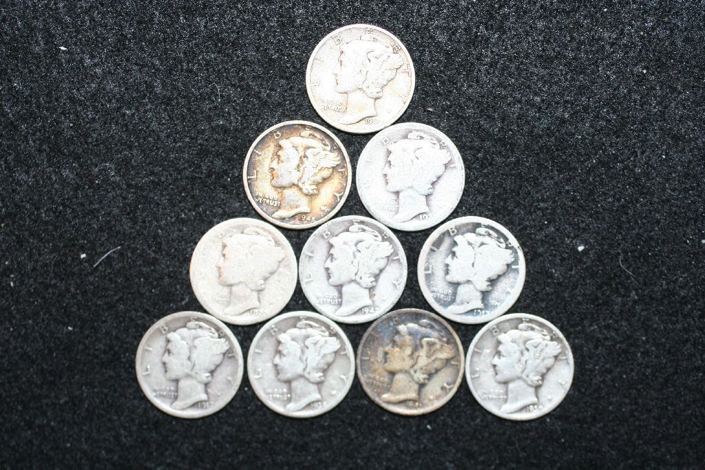 Mercury Dime; Various Dates & Conditions; Lot of 10