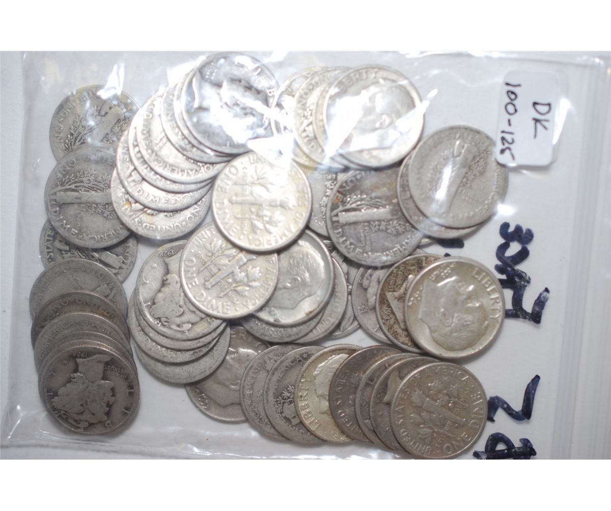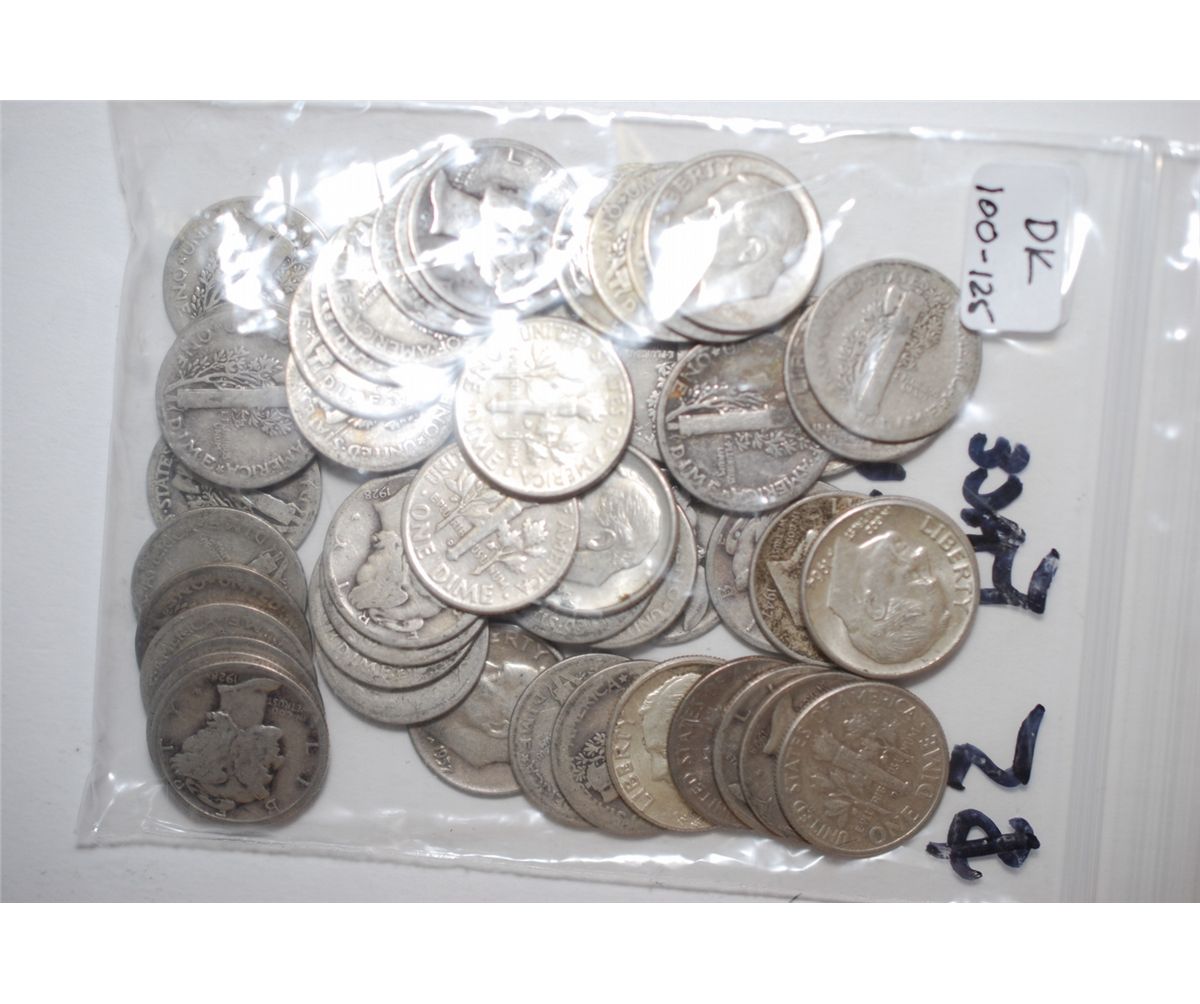Mercury Dime; Various Dates & Conditions; Lot of 38 & Roosevelt Dime; Various Dates & Conditions; Lot of 12; Total Lot of 15; EST. $100-125